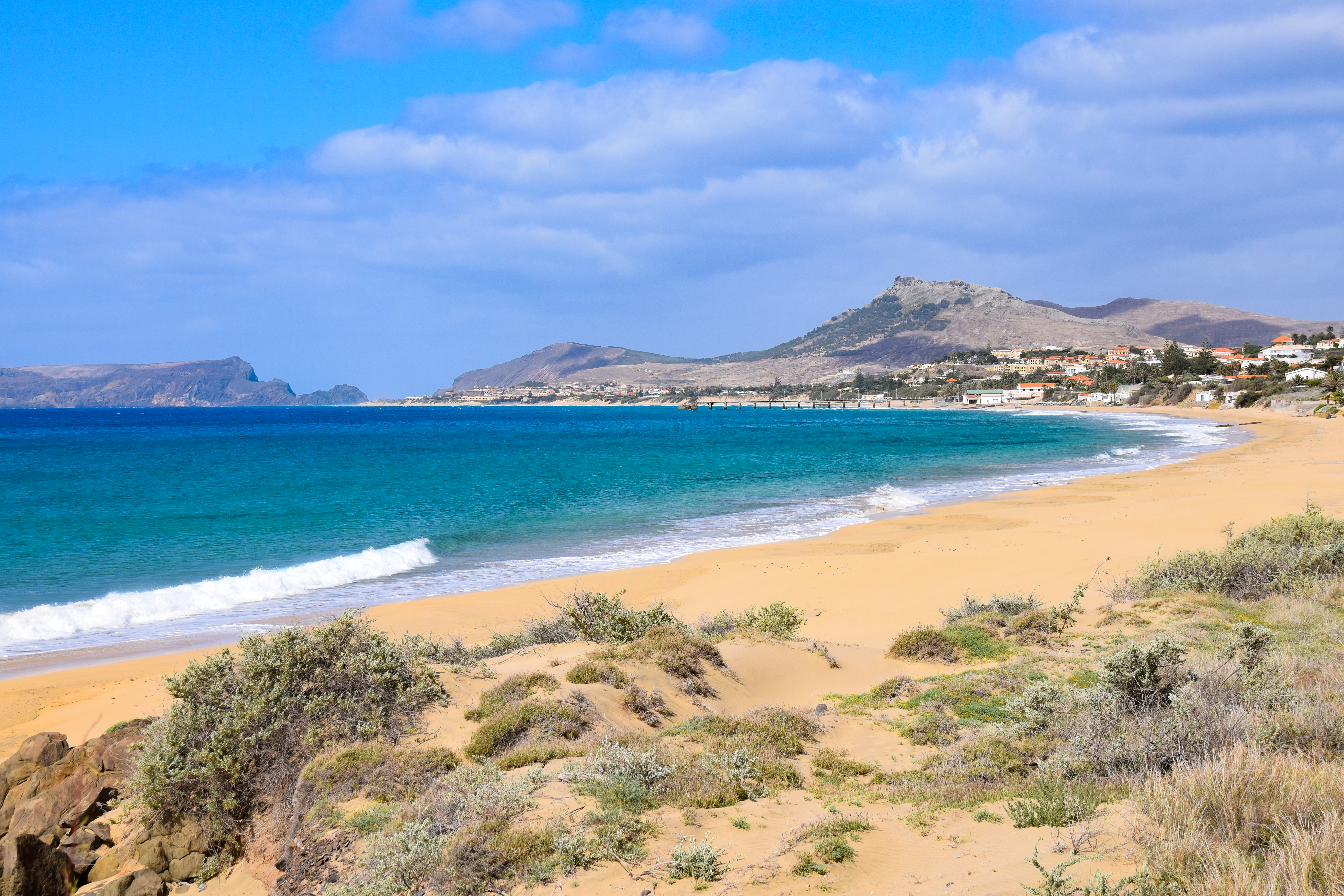 - Pequeno-almoço buffet no hotel. Em hora a combinar localmente, transporte privativo ao cais do porto do Funchal. Embarque em ferry boat, para uma agradável viagem com destino à Ilha de Porto Santo. Chegada e início imediato da visita panorâmica à denominada ?Ilha Dourada?, tão espantosamente diferente da Ilha da Madeira, de areias macias e águas matizadas de vários tons de azul, palmeiras exóticas e moinhos de vento, leva o visitante a absorver em todos os cantos, a beleza primitiva das paisagens que lembram o início da epopeia dos Descobrimentos. Da visita em autocarro constam: o Campo de Baixo, o lugar das Pedras Pretas, a Cidade Vila Baleira, com o largo do Pelourinho, a Igreja Matriz e a casa Museu de Cristóvão Colombo (entrada incluída). Passando pela Serra de Fora e Serra de Dentro, seguimos para o Norte da Ilha para Fonte da Areia e Camacha onde paramos para uma prova do vinho local. Subindo a 437 metros, paramos no miradouro do Pico do Castelo, regressando finalmente ao litoral. Almoço com bebidas incluídas em restaurante local. Tarde totalmente livre para desfrutar da magnífica praia de Porto Santo. Em hora a combinar localmente, transporte privativo para o cais de Porto Santo. Regresso em ferry boat ao Funchal. Chegada e transporte privativo ao hotel. Alojamento.