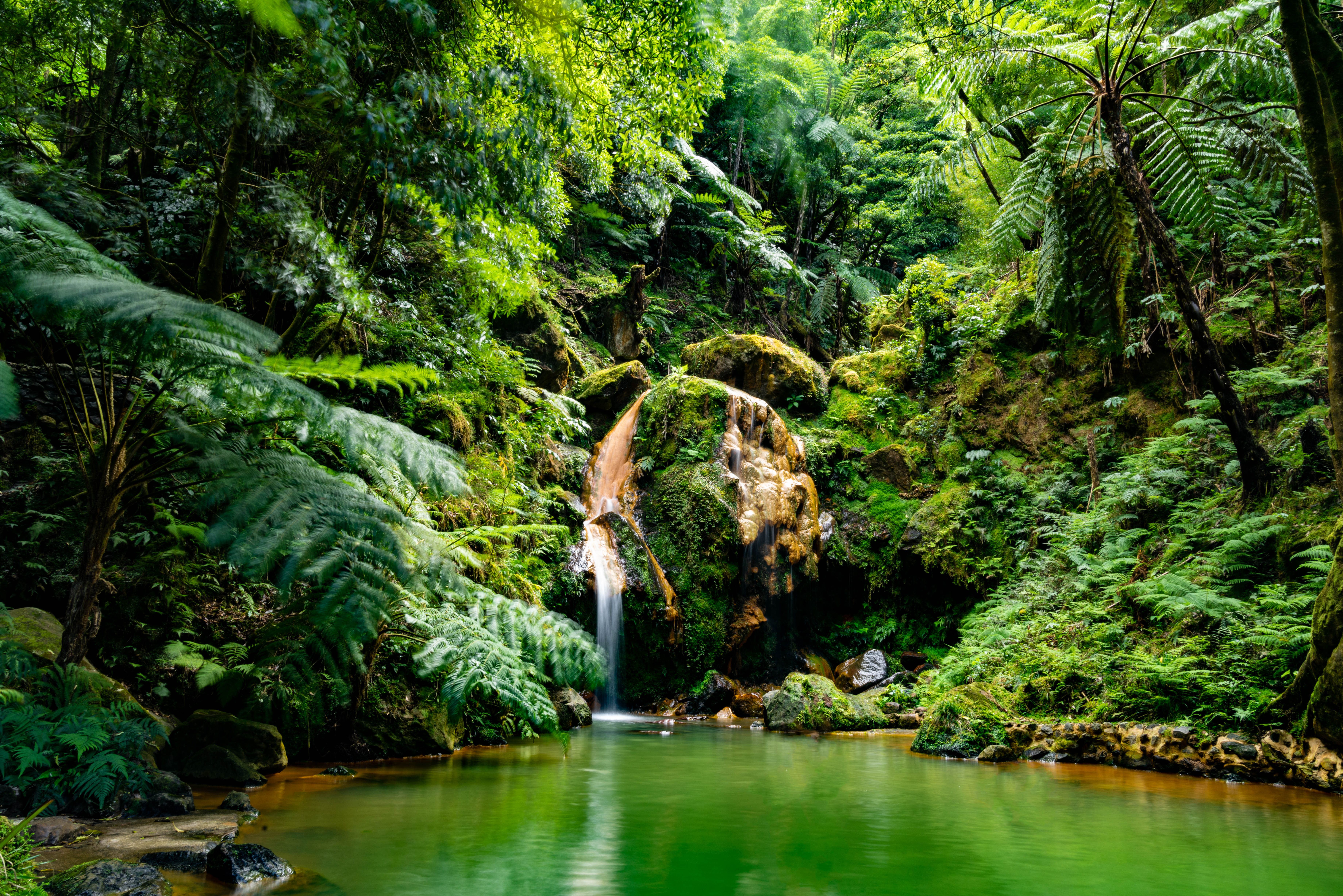 - Pequeno-almoço buffet. Início da visita de dia inteiro. Paragem na primeira capital da ilha, Vila Franca do Campo, com tempo para passear junto à praia e marina; continuação até às Furnas, para visita às ?Caldeiras? (Fumarolas das Furnas) ? fenómeno vulcânico com caraterísticas únicas ? e ao romântico parque Terra Nostra (com possibilidade alternativa de banho na piscina termal de águas férreas, a mais de 30 graus). Deslocação até à bucólica Lagoa das Furnas, de cujas margens será retirado, dos buracos no solo, o ?Cozido?. Almoço de ?Cozido das Furnas?, servido no Restaurante Casino do Hotel Terra Nostra. Subida ao Miradouro do Pico do Ferro, para uma inesquecível panorâmica de toda a zona e continuação até às plantações de chá, com visita à Fábrica Gorreana e prova de chás Verde, Pekoe e Orange Pekoe. Na Serra de Água do Pau, visita à ?Caldeira Velha? (entrada incluída-bilhete de visita) e paragem no miradouro sobre a Lagoa do Fogo e paisagem que a rodeia. Regresso a Ponta Delgada. Jantar e alojamento no hotel.