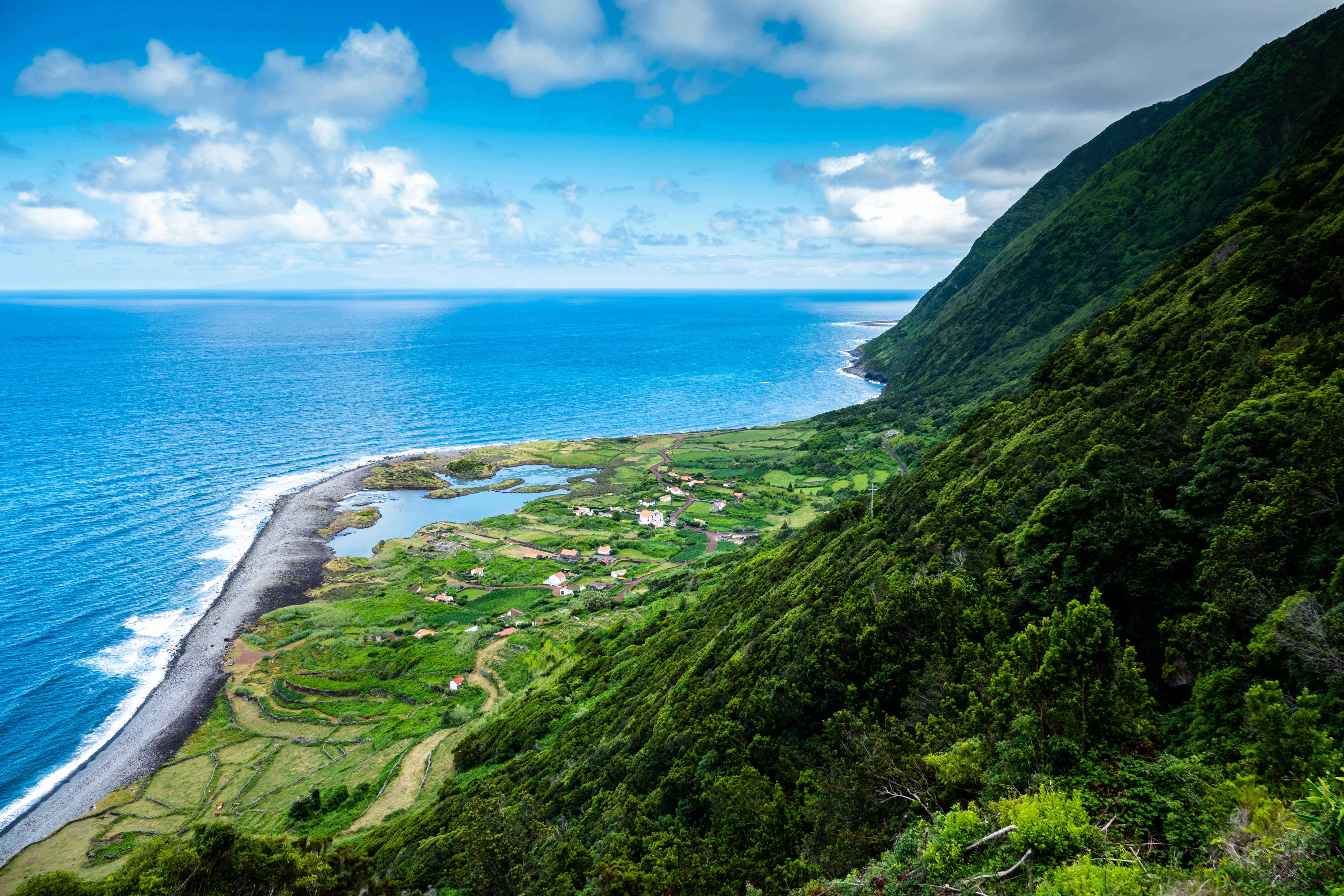 - Pequeno-almoço buffet no hotel. Em hora a informar localmente transporte ao aeroporto. Formalidades de embarque e partida em voo regular da SATA Air Açores, com destino ao aeroporto da Ilha das Flores. Chegada e transporte ao hotel, onde será servido o almoço. De tarde, início de visita à Ilha das Flores. Tomamos a direção norte da ilha, ao longo da costa, e com vistas panorâmicas de extrema beleza de frente para a ilha vizinha o Corvo. Passagem pelo vale da Fazenda, com paragem no miradouro dos Caimbros. Seguindo para norte a paisagem muda para dar lugar as montanhas cheias de musgo amarelo e laranja, até à freguesia de Ponta Delgada, onde se admira o modo de vida pastoril dos habitantes locais e a emblemática baía do mesmo nome, com paragem no miradouro de Ponta Delgada com a sua vista fabulosa sobre o canal das Flores e Ilha do Corvo. No regresso a Santa Cruz visitas com paragens nos miradouros das Lagoas Seca e Branca. Jantar e alojamento no hotel.