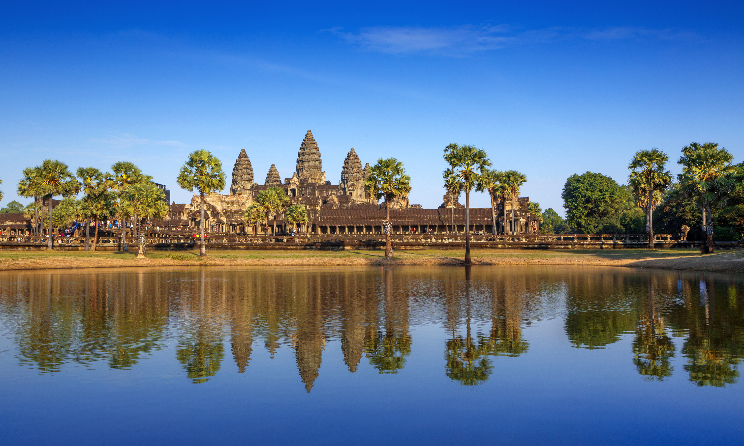 - Saída para visitar a joia da coroa Khmer: o complexo de Angkor Wat, que é Património da Humanidade pela UNESCO. Os Templos de Angkor foram construídos entre os séc. IX e XIII e, os que resistiram constituem o esqueleto do que foi outrora o centro religioso e administrativo do Império Khmer. Em cerca de 600 km2 foram encontrados mais de 100 templos. Regresso ao hotel para o pequeno-almoço. Saída para visitar o Templo Bayon, famoso pelas suas enormes estátuas que olham serenamente para várias direções, o que lhe valeu o nome mais simples de templo das caras gigantes. Continuamos para o Templo de Ta Prohm, que ao contrário de muitos dos outros templos, foi deixado exatamente no estado em que foi descoberto. Almoço num restaurante local. Após o almoço seguimos para a aldeia flutuante de Chong Kneas*. Trata-se de uma povoação de cerca de 20.000 pessoas, com casas (estruturas) edificadas até 10 metros sobre o nível da água. Aqui conheceremos o estilo de vida campestre desta região. Regresso a Siem Reap. Jantar em restaurante local. Alojamento.
